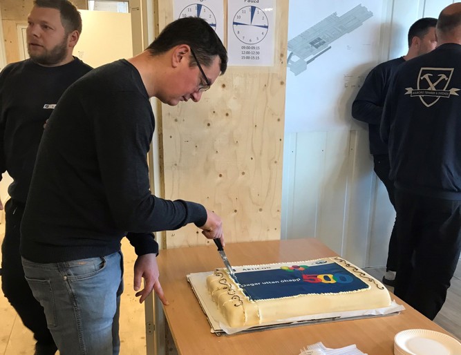 Tað er ikki langt síðani, at tað varð grillað á byggiplássinum í samband við, at tað hevði verið arbeitt í yvir 400 dagar uttan skaða við fráveru. Í dag var aftur hátíðarhald á plássinum, tí nú eru 500 dagar farnir uttan skaða við fráveru.