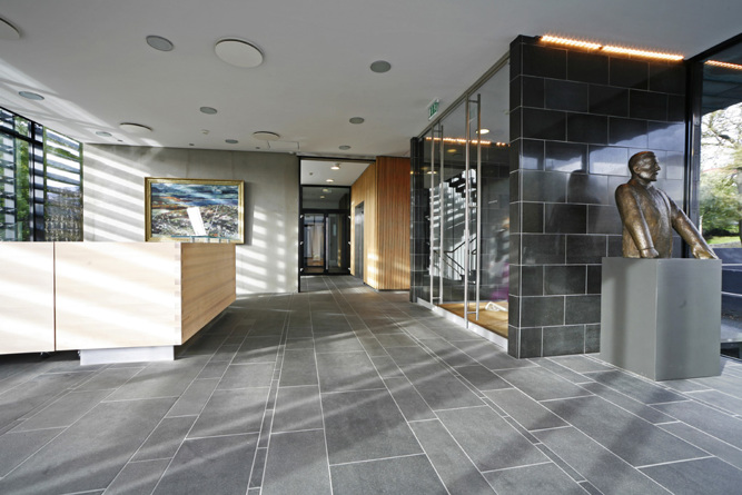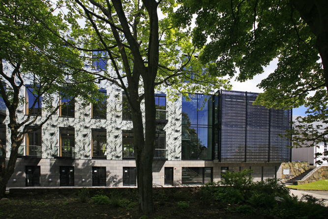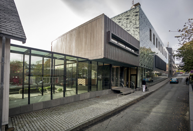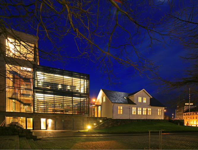 Some years ago the Faroese Parliament purchased their neighbour the former head quarter of the Faroese Telecom. In 1998 the original contractor Byggi-Service was asked to undertake the work of totally refurbish and renovate the Telecom building and connect it to the Parliamentary building. In December 2001 Articon purchased Byggi-Service and later on the two companies merged. The work was conducted in three stages and finally completed in January 2007 at a cost of 37,5 Mio DKK. In the former telecom building there are now a number of offices used by the parlamentarians, conference rooms and the management of the Parliament. The exterior has been decorated by a young gifted faroese artist.