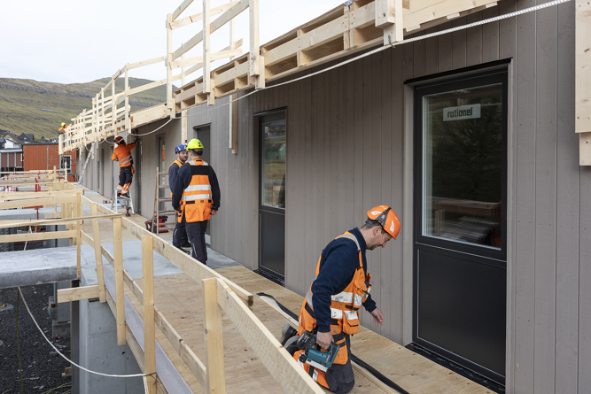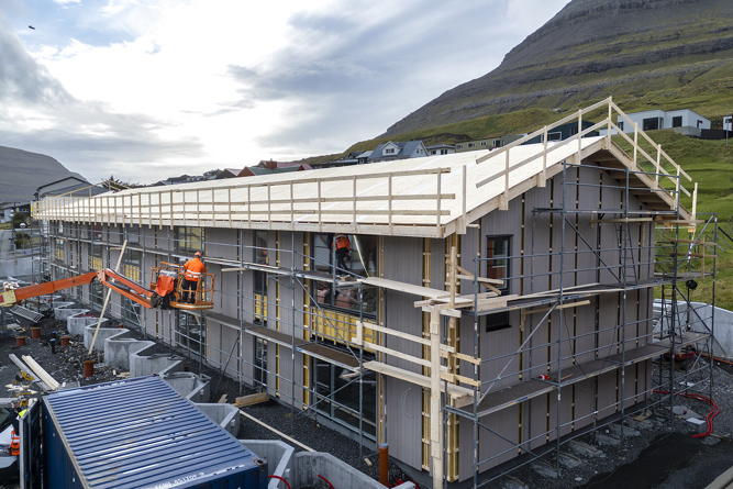 Talan er um bygning, sum er 43 metrar langur, 10 metrar breiður og 8 metrar høgur. Í alt verða 10 íbúðir í bygninginum. Arbeiðið verður liðugt um einar fýra vikur – og tá kann farast undir at gera bygningin lidnan innan.