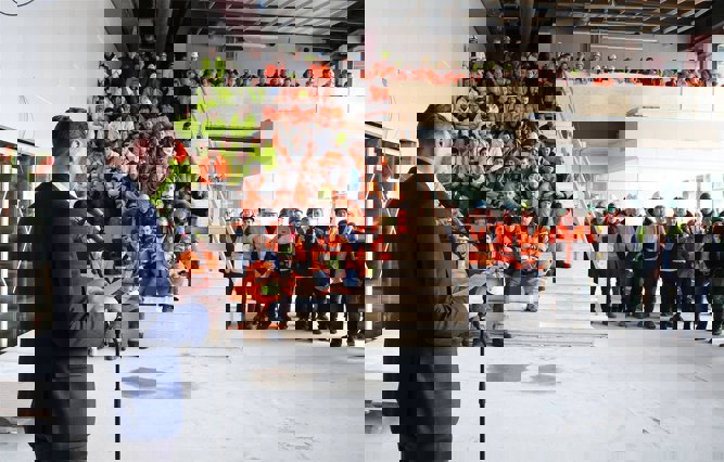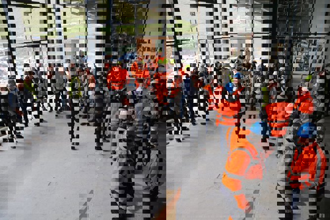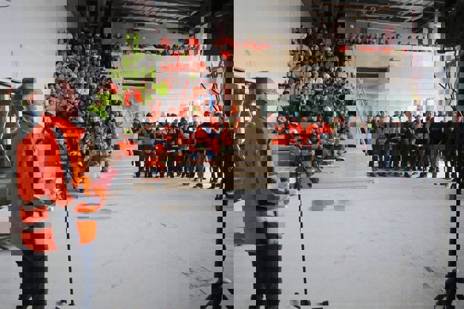 Tað var Rógvi Jacobsen, stjóri á smoltstøðini norðuri á Strond, ið bjóðaði vælkomin til starvsfólkini hjá Articon, okkara undirveitarum og fólkunum frá Bakkafrost.