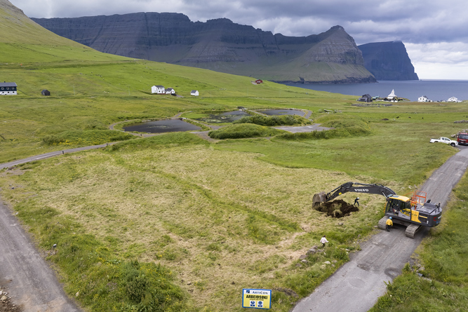 Tað er at grava omanav, leggja leiðingar og planera fyri bygningi og tilhoyrandi parkeringsplássum. Farið er longu undir hetta arbeiði, og tá ið tað er liðugt, væntandi í november, er klárt at stoypa fyrsta formin til nýggja depilin.