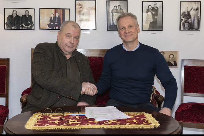 Borgarstjórin í Runarvíkar kommunu, Tórbjørn Jacobsen og stjórin í Articon, Jón Sigurdsson, nýttu høvi at røða og hvør sær at takka fyri sera gott samstarv hesa tíðina.